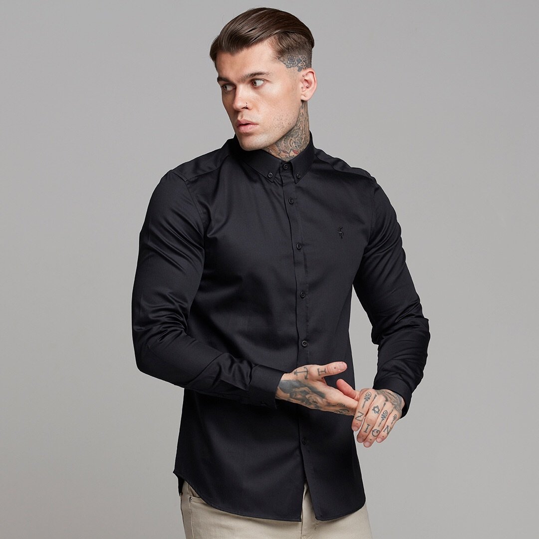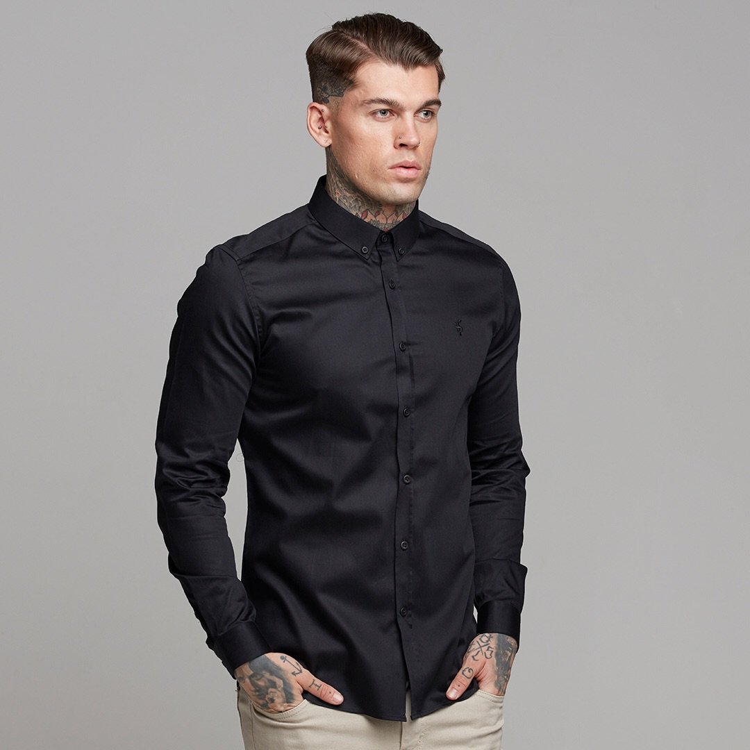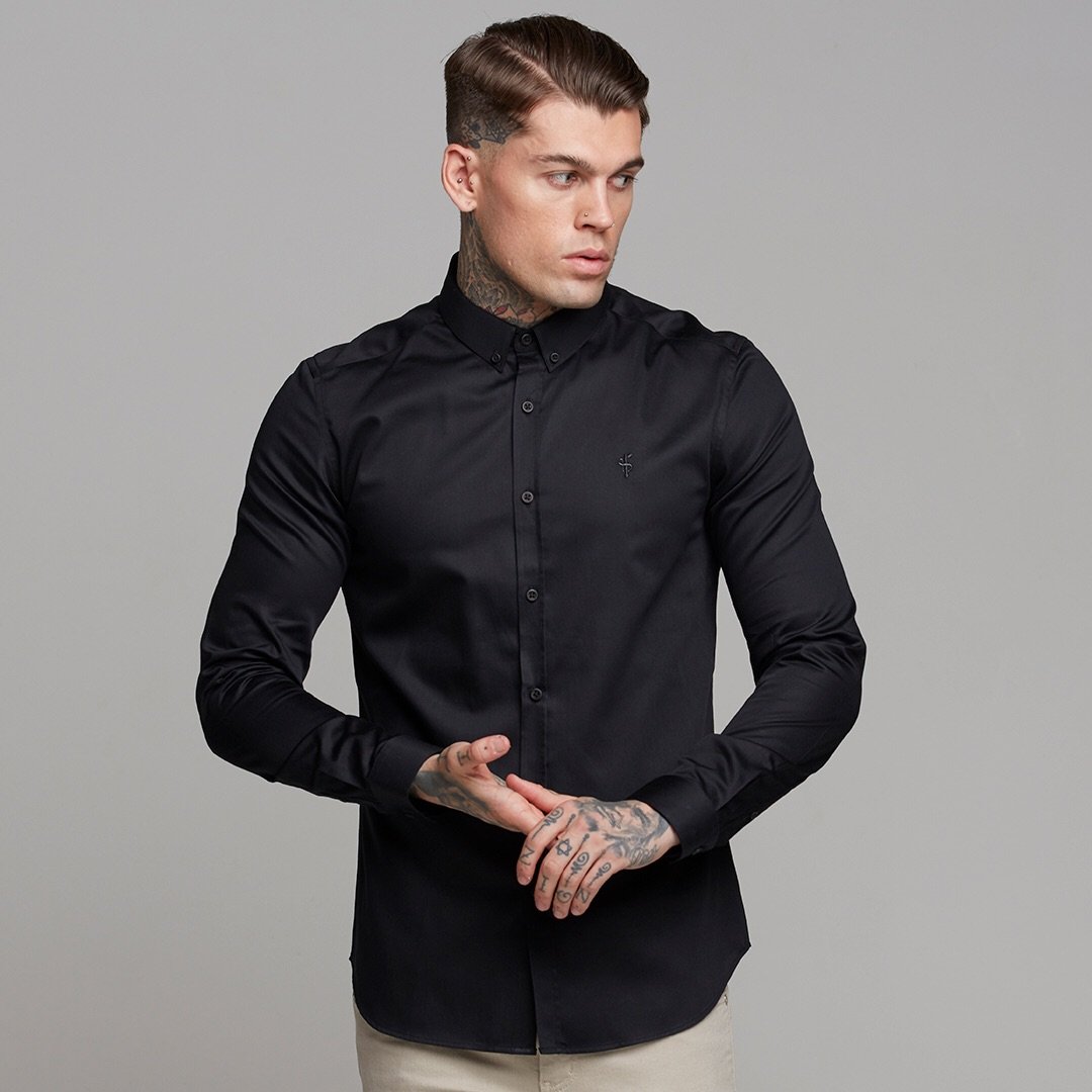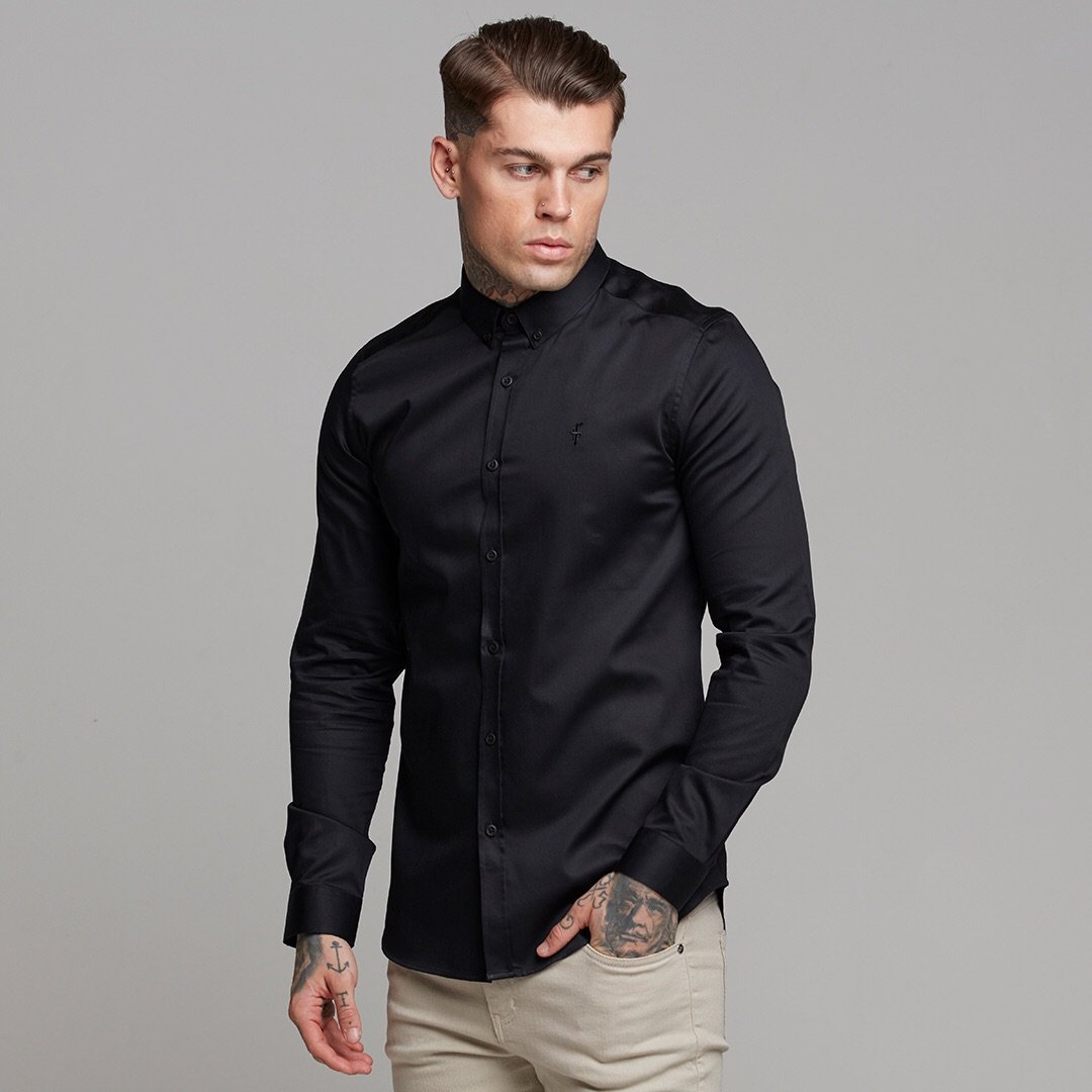 Father Sons Classic Black Luxe Egyptian Cotton Button Down - FS491