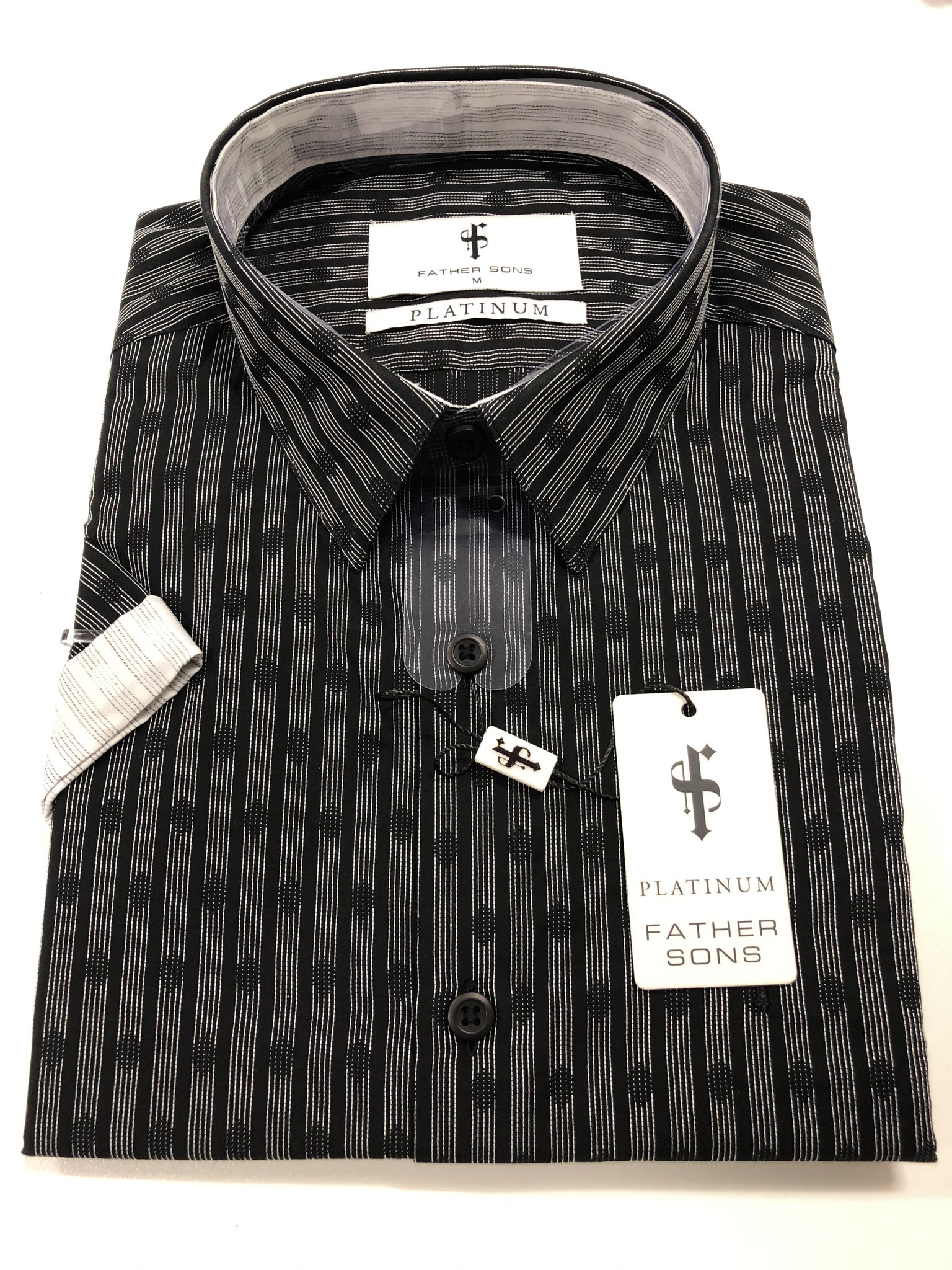 Father Sons Classic Black White Contrast Diamond Print Short Sleeve - FS165